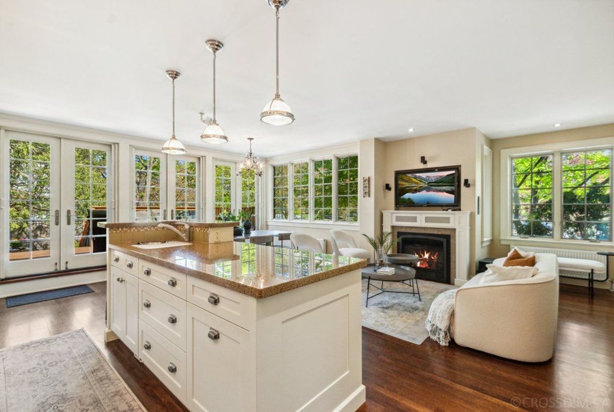 Welcome to this distinguished, sun-filled home on a prominent corner lot, across from a beautiful park, a short walk to both Yonge St & Mount Pleasant Rd. Entering, you are greeted with hardwood flrs that flow into a cozy living rm. With a charming wood-burning fireplace, this warm, welcoming space features a bay window that overlooks a beautifully landscaped perennial garden, complete with in-ground irrigation system, with year-round visual appeal & lots of natural light. The heart of the home is a spacious open-concept area that combines kitchen, dining & family rm into one expansive & inviting room, perfect for both daily living & entertaining. Floor-to-ceiling double glass doors span the rear wall, providing indoor/outdoor living & unobstructed garden views. The kitchen boasts a centre island with breakfast bar, stainless steel appliances, ample cabinetry & built-in desk area. Upstairs, you'll find 4 comfortably sized bdrms & 4-piece bathrm. The fully renovated lower level offers exceptional versatility. Currently a self-contained suite with its own entrance, spacious bdrm, 3-piece bathrm, full kitchen with stainless steel appliances, in-suite laundry & comfortable living area, ideal for in-laws, nanny, or as potential income-generating rental, the layout can easily be reintegrated into the main home to suit your family's needs. Step outside to a stunning back deck that overlooks a fully-fenced, private yard bursting with summer blooms, and garage & private drive for 3 cars. Located across from June Rowlands Park, with tennis courts, playground, splash pad & green space, this home is situated in the highly sought-after Davisville Jr PS and North Toronto CI school areas & close to several of Toronto's top private schools. Enjoy the convenience of a short walk to TTC, Davisville Stn & vibrant shops & fine dining along Mt Pleasant & Yonge. Don't miss this rare opportunity to own a truly exceptional home in one of Toronto's most desirable neighbourhoods.