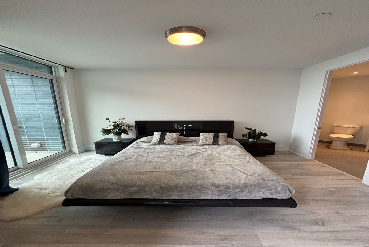 Welcome to this luxurious 1-bedroom, 2-bathroom penthouse suite offering breathtaking lake views from every room. Soaring 10' floor-to-ceiling windows flood the space with natural light, highlighting the open-concept layout and sleek designer finishes. The modern kitchen features integrated appliances, quartz countertops, matching backsplash, and contemporary white cabinetry. The spacious primary bedroom includes a walk-in closet and a stylish 3-piece ensuite.Enjoy two private balconies with walk-outs from both the living room and bedroom, overlooking the building's beautifully landscaped terrace, sundeck, and pool. This suite comes semi-furnished for added convenience (see attached feature sheet for the full list of included furniture).Resort-style amenities include a fitness centre, party room, outdoor pool, and 24-hour concierge. Steps from Sugar Beach, waterfront trails, the ferry terminal, and all that the Harbourfront, Distillery District, and St. Lawrence Market have to offer. Easy access to public transit and major highways.High-speed internet, one parking spot, and one locker are included. Amenities include: 24-hour concierge & security, fitness centre with gym, spin room, yoga studio, sauna, outdoor pool, terrace & sundeck, stylish party room & billiards, theatre room, bike storage, and more! See feature sheet for more details.
