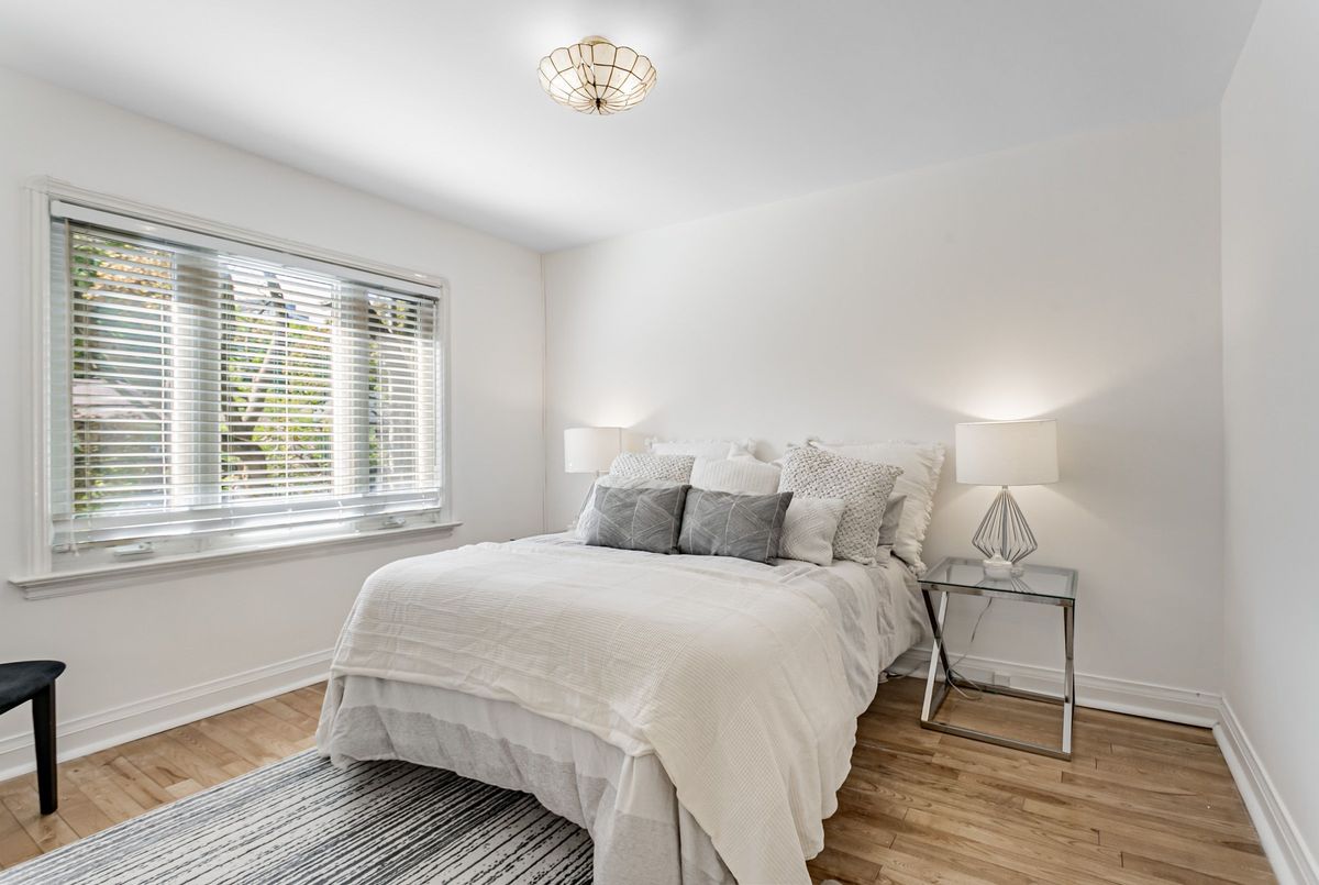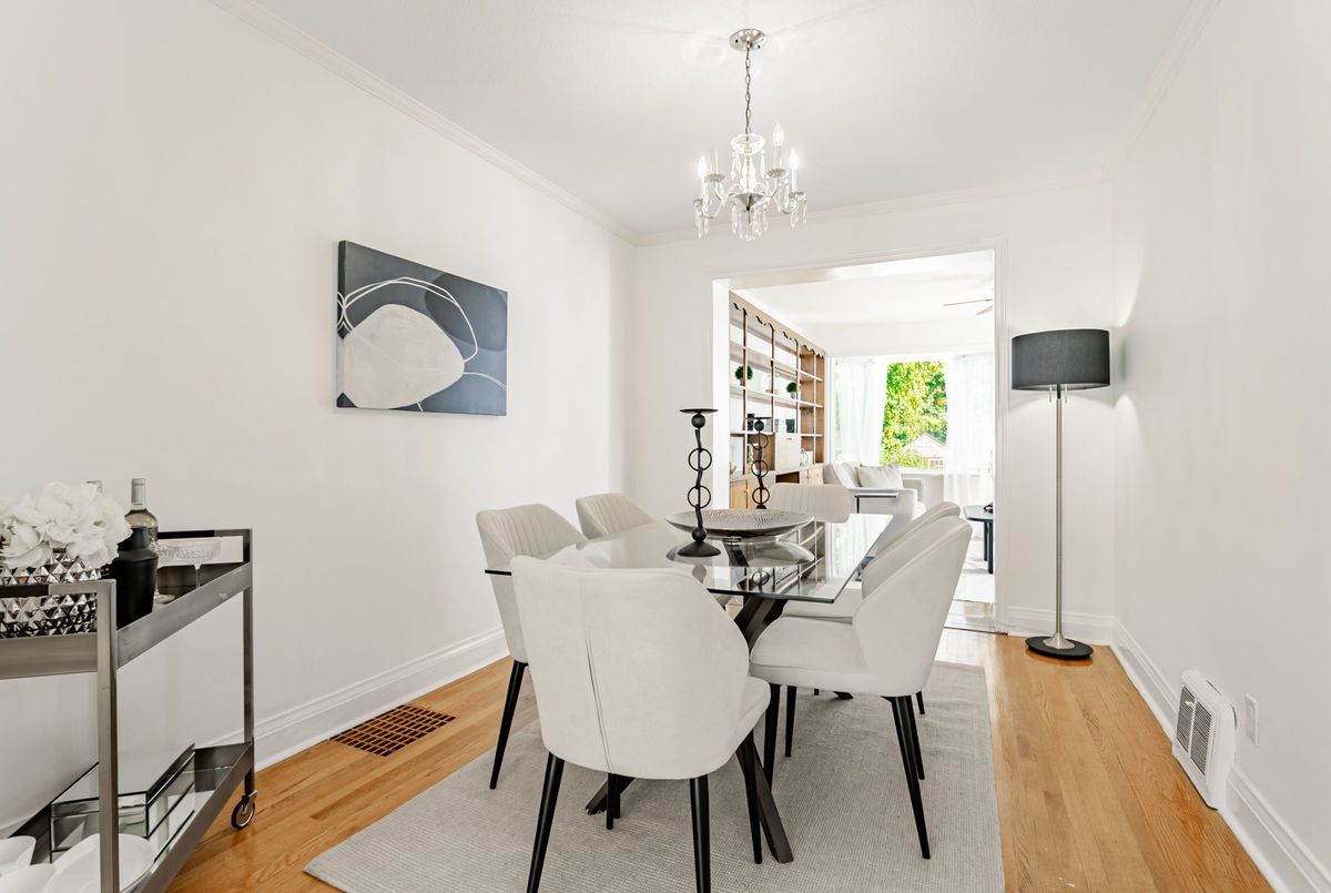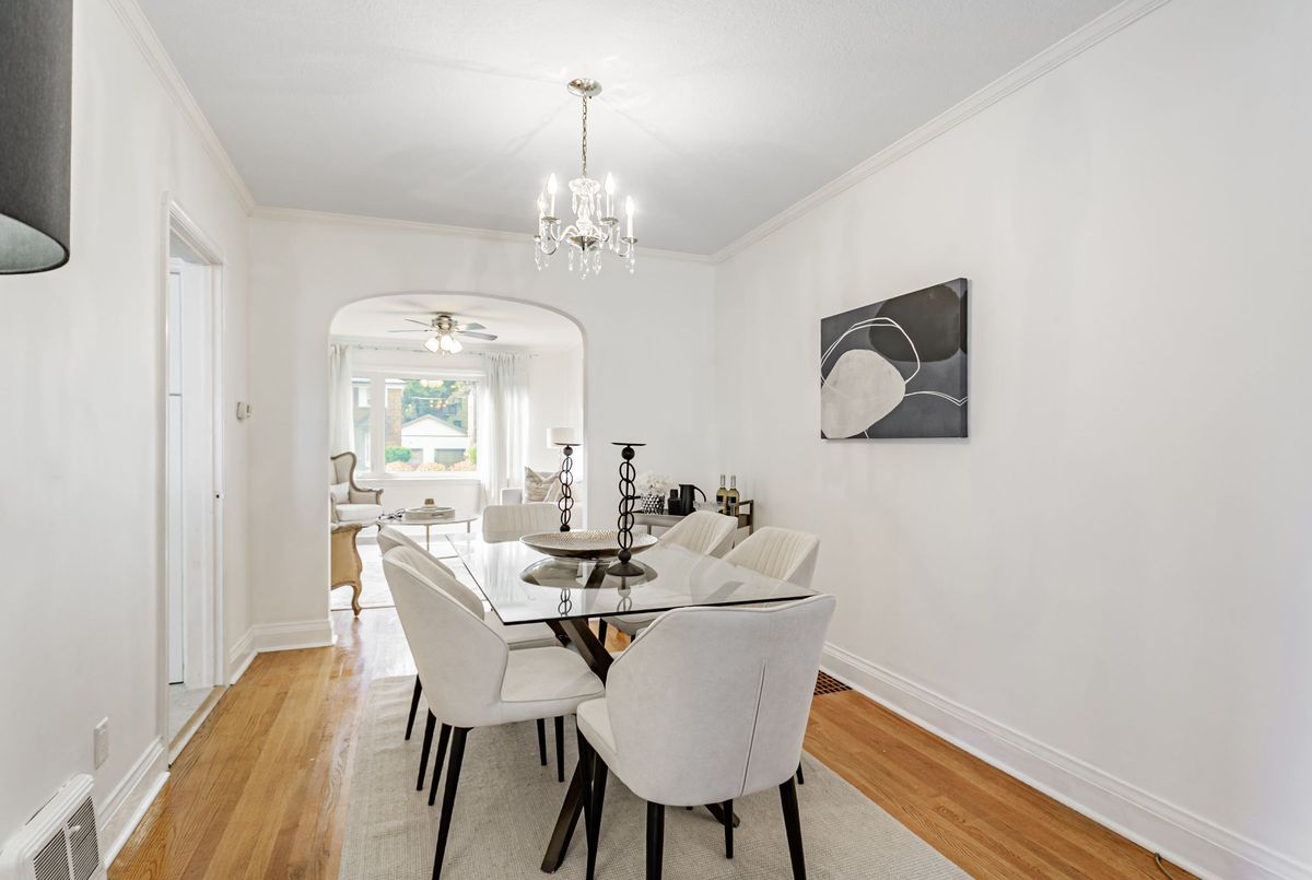 Extra wide Semi located on Aprx 30ft Frontage on one of the quietest streets in Leaside. This beautifully maintained 3+1 Bedrm 2 Bathrm home offers a rare Family Room addition and timeless charm throughout. The main floor features elegant hardwood floors across the Living, Dining & Family Rooms. The spacious Living Room is filled with natural light with a large picture window overlooking the street. The open-concept Dining Room is perfect for entertaining, seamlessly connected to both the Living and Family Rooms. The Kitchen offers ample storage, tile floors, and a gas stove. The rare main-floor Family Room features a cozy gas fireplace and a walk-out to the private back deck, perfect for relaxing or entertaining outdoors. Upstairs, you will find three spacious Bedrooms, all with hardwood floors, large windows, and closets. The Primary Bedroom overlooks the street and the other two bedrooms overlook the backyard. The Lower Level includes a large Recreation Room, Laundry Room, ample storage, and an additional Bedroom perfect for guests or a nanny suite. Enjoy outdoor living on the back deck overlooking the spacious backyard, complete with a garden play area and a convenient garden shed. Located just steps from shops, fine dining, and the TTC, this home is within the highly sought-after Northlea and Leaside school district. A detached garage and mutual drive provide parking for up to three cars. Wonderful space just waiting for you to ad your own personal touches. Explore nearby Serena Gundy Park, with scenic trails leading to Sunnybrook Park and beyond. A rare opportunity to own a beautiful family home in one of Toronto's most desirable neighborhoods! This street has amazing community feel with lots of kids to enjoy all the holiday activities together.