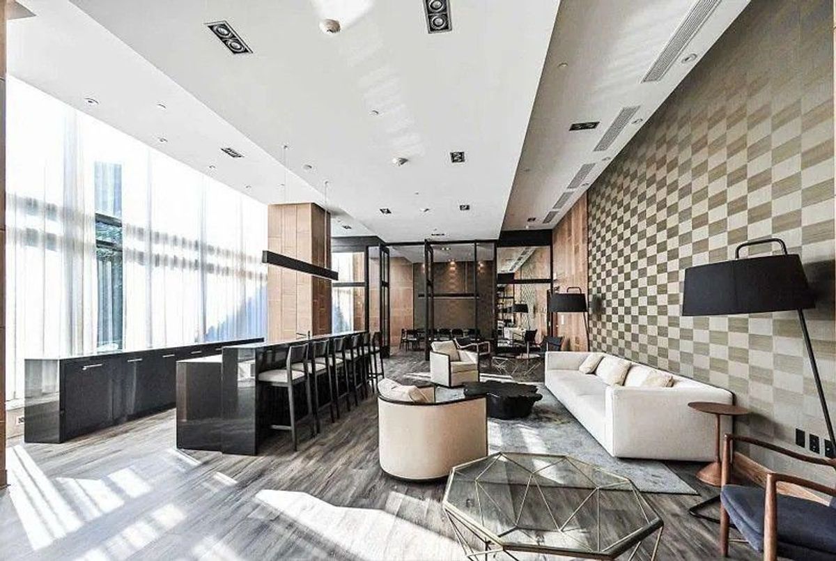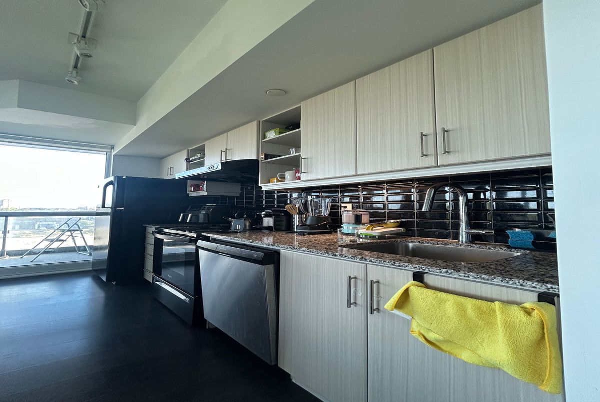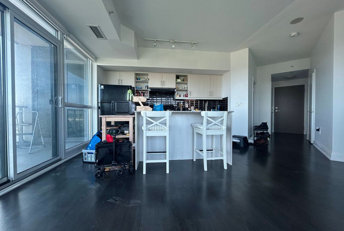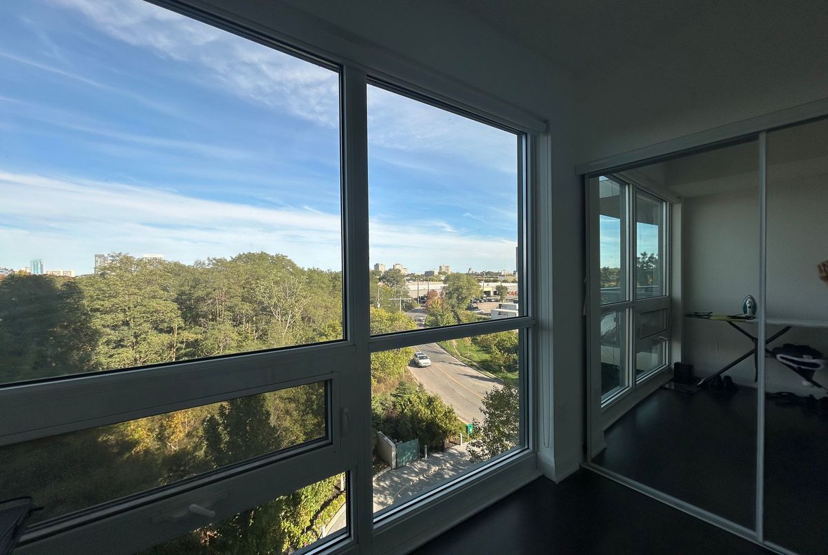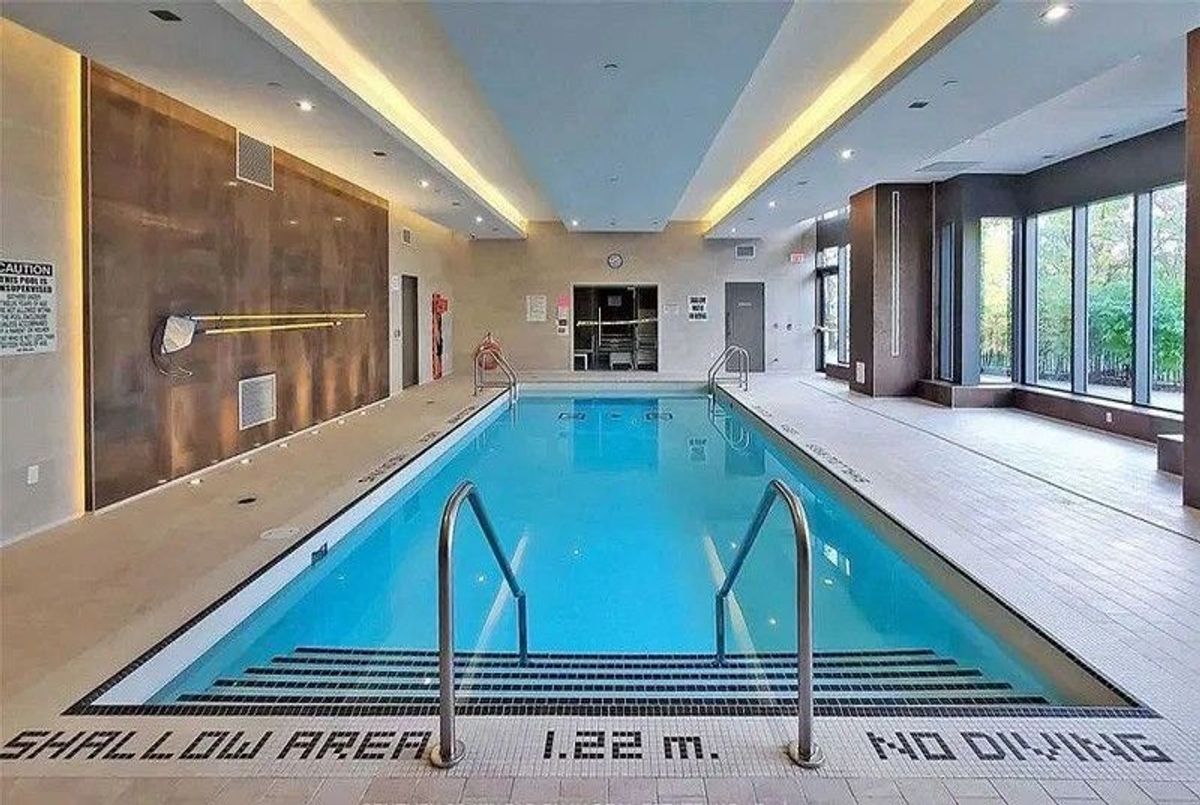 Spacious 2 bedroom 2 bathroom suite with fantastic panoramic view! Featuring 859 sqft of interior space without any wasted space and a 75 sqft balcony, 4 piece ensuite bathroom and 3 piece bathroom, floor to ceiling windows, kitchen island and 9ft ceiling. Corner unit showcasing unobstructed view of the CN Tower with an abundance of natural light throughout the day. Building amenities include 24 hour concierge, indoor swimming pool, billiards room, gym, party room, outdoor barbecue area, guest suites, dry sauna and yoga room. Convenient access to shops, grocery stores, nearby schools and the Don Valley Parkway; walking distance to Leslie and Eglinton LRT station and beautiful Sunnybrook Park. Enjoy the benefits of peace and quiet in a fantastic community while still living in the City and avoiding the chaos! Best of both worlds