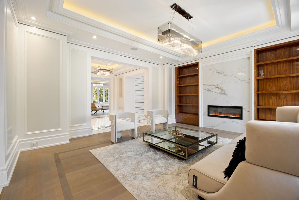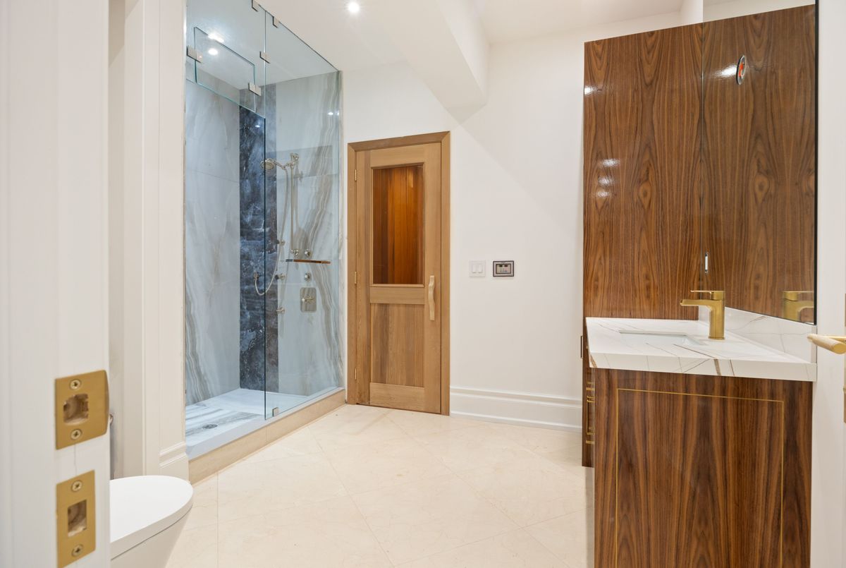 Every facet of 100 Bayview Ridge reflects purpose and mastery a home where no surface or line exists without intent. Set on 44,595 sq. ft. of landscaped grounds, this residence was envisioned and executed with one guiding principle: uncompromising quality. From the foundation up, craftsmanship defines its essence. The exterior and interiors are wrapped in natural marble, hand-selected and installed by artisans. Select areas feature intricate, hand-cut inlays each aligned to perfection. Beneath every stone surface runs radiant heating, merging comfort with precision engineering. Inside, the millwork tells a story of individuality and discipline. There are no prefabricated elements every wall panel, cabinet, and door has been hand-built and finished to exact tolerances. Custom leatherfaced cabinetry integrates with the architecture, while book-matched stone in the bathrooms offers gallery level refinement. The main and prep kitchens balance function and form, fully outfitted with Sub-Zero and Wolf appliances, paneled to blend seamlessly with the millwork. Twin onyx marble islands provide sculptural elegance and durability, while dual ovens, microwaves, and dishwashers ensure performance at scale. The adjoining prep kitchen supports entertaining or private service. Each of the twelve bathrooms is individually curated with Axent smart toilets, Graff fixtures, and Victoria + Albert Duravit bathtubs. The primary ensuite stands apart anchored by a goldleaf marble vanity, hand-carved as a singular statement. On the lower level, a spa with steam and sauna, a professional gym, a private theater, and a custom walnut bar continue the same philosophy of flawless execution. 100 Bayview Ridge is not defined by extravagance but by precision. It is a study in design, craftsmanship, and discipline where quality isn't just seen but felt in every detail.