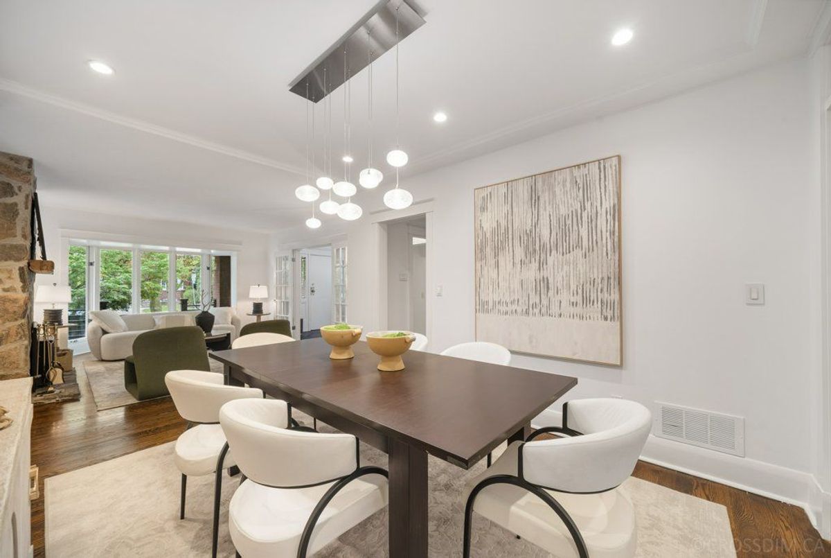 Gorgeous Family Home on Rare 30 x 182ft South-Facing Lot on Coveted Sherwood Avenue. This exceptional home offers 4 spacious bedrooms and a main floor family room with walk-out to a private, sun-filled south-facing garden. The renovated eat-in kitchen is ideal for the chef in the family, featuring stainless steel appliances and modern finishes. The formal living room boasts hardwood floors, a large bay window, and a striking stone fireplace, while the large dining room with hardwood floors and pot lights provides the perfect setting for entertaining. Upstairs, the primary suite impresses with its fireplace, private balcony, large walk-in closet, and renovated 5-piece ensuite with skylight. Two additional bedrooms on the second floor each feature hardwood floors, closets, and views overlooking the street, complemented by a renovated 4-piece bathroom. This truly is a very special find. The finished lower level adds usable living space with a recreation room, nanny suite or guest bedroom, 4 pc bathroom, laundry room, and a great storage room. The backyard is a true gem with a deck, stone patio, and expansive lawn. Steps to Sherwood Park and minutes to Yonge Street's fine dining, shops, and TTC. Located in the highly sought-after Blythwood PS school district. Front Pad Parking is Non Conforming. Client purchased it under the same state. This is a rare opportunity to own a very special home in one of Toronto's most desirable neighborhoods.