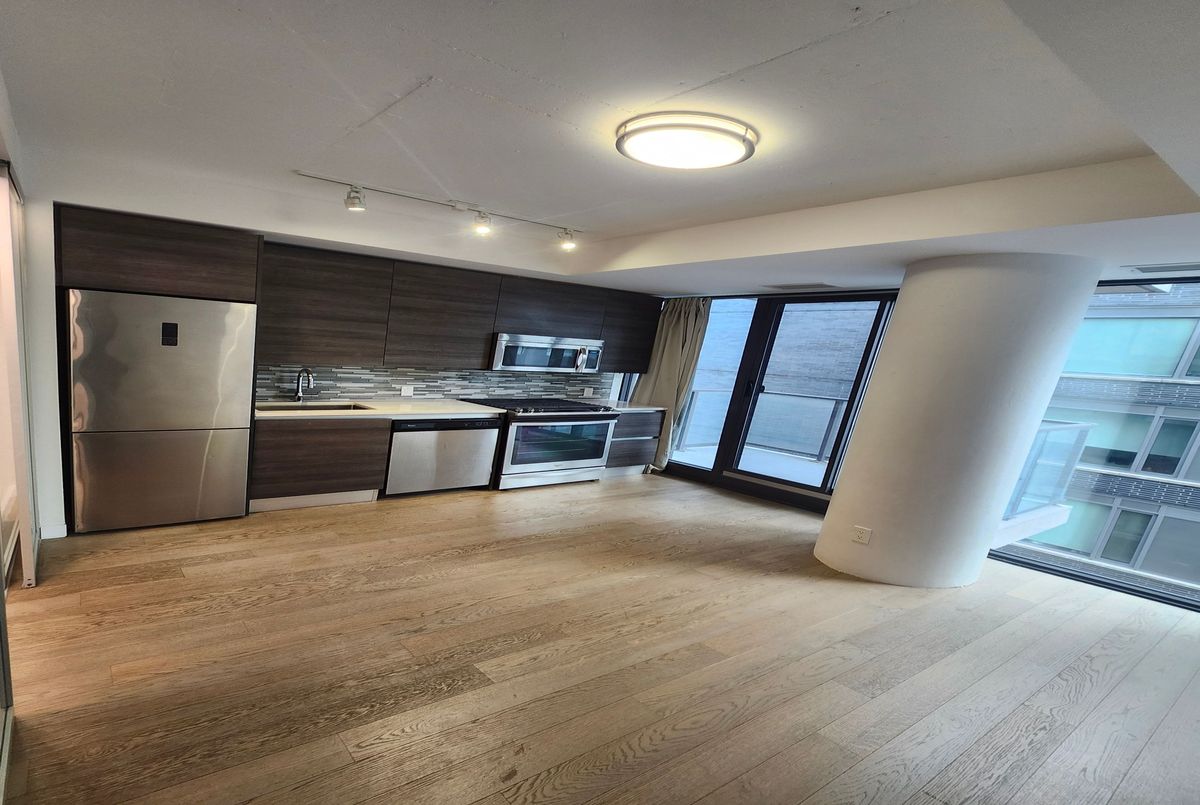 Welcome to 111 Bathurst. Your Open Concept, city-forward launchpad in the heart of King West. This Bright unit features 9' ceilings, floor-to-ceiling windows, a walkout open Balcony and a sleek Euro-inspired kitchen. Carpet free with Laminate throughout! Step outside and you're seconds from the best of King West - cafes, cocktails, patios, parks, and that effortless downtown energy. Need to escape the core? You're 7 minutes to the Gardiner Expressway, 20 mins to the 401, or a 5-minute bike ride from the lake. A clean, well-managed building in a location that keeps life moving - fast, fun, and full of possibilities.