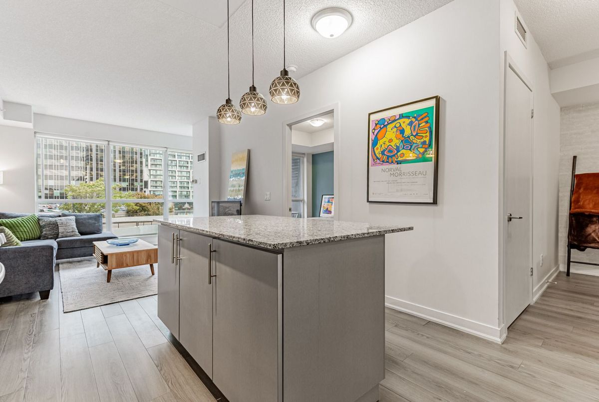 Fantastic Opportunity at Yonge & Eglinton! Welcome to the stylish Berwick Condo, featuring a 1 bedroom + den and 1 bathroom with 632 sq. ft. of living space and a charming balcony. This bright suite is flooded with natural light through floor-to-ceiling windows and offers a smart layout with no wasted space. The open concept living and dining areas flow seamlessly into a modern kitchen with a large centre island, granite countertops and full size stainless steel appliances. The versatile den is perfect for a home office, dining area, or guest space. This unit also includes one parking space, one storage locker, designer laminate flooring, ample closet space, and convenient ensuite laundry. Building amenities feature a 24-hour concierge, yoga/pilates studio, gym, guest suite, theatre room, and outdoor patio with BBQs. Ideally located around the corner from the vibrant Yonge & Eglinton intersection, The Berwick offers the perfect balance of tranquility and convenience. Tucked away on a quiet street yet only moments from Farm Boy, top restaurants, shops, fitness studios, the subway, and the soon to be completed Eglinton Crosstown LRT!