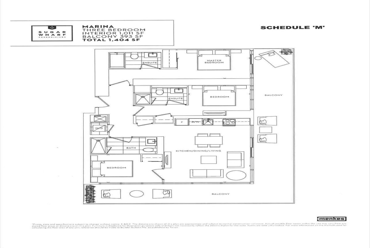 Luxury Sugar Wharf West Tower By Menkes, South East Breathtaking Lake View 3 Bed Unit, 1011Sqft + 393 Sqft Wraparound Balcony, Ceiling To Floor Windows, High End Miele Kitchen Appliances, Quartz Counter Top. Each Rooms Gets Bright Natural Light. Building Amenities Include Gym, Party Room, 24 Hour Security Guard & Concierge, Bbq Area, Lounge & Much More. Excellent Location And Convenient, Close To All. Steps To George Brown, Park, Harbour Front, St. Lawrence Market, Farm Boy, Lcbo Union Station, Financial District & Quick Access To Gardiner/QEW And Much More! Bell Unlimited Gigabit Fibe 1.5 Package Included! 1 Underground Parking Included!