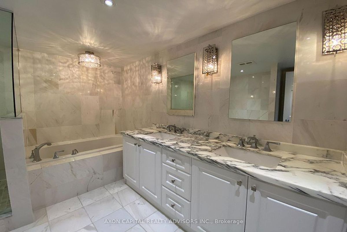 Fully Renovated 2 Bedroom + Den At Empire Plaza In Heart Of Financial District! Almost 1600 Sqft Stunning Large Kitchen W/Granite Counter Island, Stainless Steel Appliances, Marble Backsplash & Soft Close Drawers. Hardwood Floors & Smooth Ceilings. Two Electric Fireplaces, Custom Closets, Large NW Facing Windows. Master Br W/6 Pc Marble Ensuite Bathroom W/Whirlpool Tub. Perfect Location 100 Walkscore In Financial Centre-Steps To Union Station, Up Express, Path, Shops & Restaurants. Building has a no dog policy.