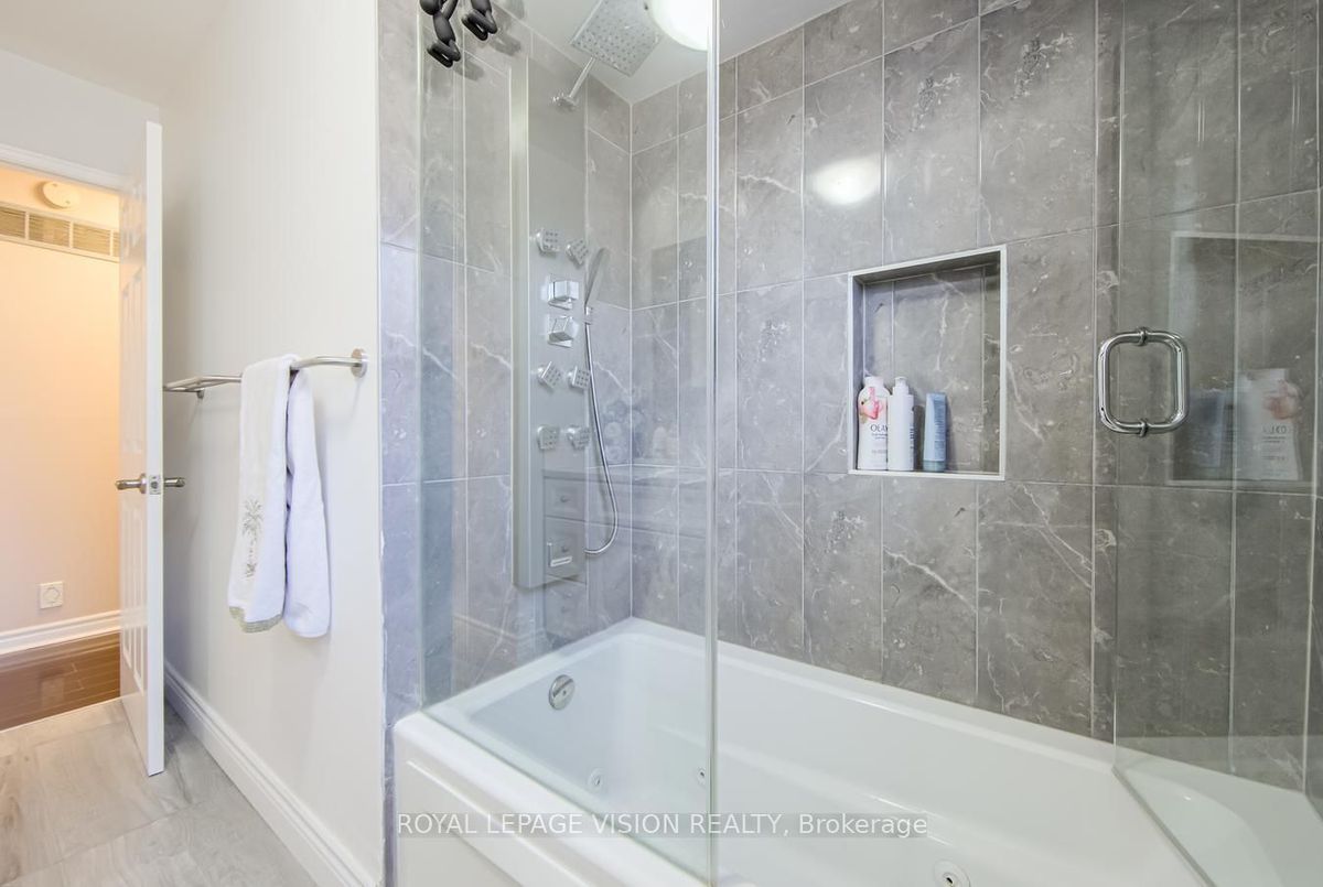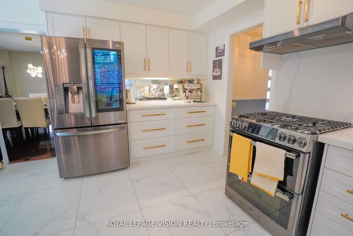 Welcome to 28 Valley Centre! Your Backyard is perfectly situated on a tranquil ravine lot with unobstructed views of the Rouge National Urban Park. This Uniquely elegant and functional, meticulously upgraded home includes two-story, four-bedroom brick executive home, thoughtfully designed and flexible for the growing family. Loaded with upgrades and features, offering 3000 sq/ft over 3 levels of combined beautifully finished living space. Ideal for entertaining, large family gatherings. Recent upgrades over past years, amount to 100-125k $$$ spent. Interior Features and upgrades include: New concrete walkway and 3 rear patios. Gazebo, enclosed porch, New magic windows and patio door, 2 new exterior doors. Professionally redesigned, Gourmet Kitchen completely remodelled custom premium-quality cabinetry. Ideal for culinary enthusiasts and entertaining guests. High-end metal pull-out cabinetry storage drawers, quartz countertops & backsplash, coffee station. Brand new high-end appliances LG gas stove, glass door fridge, dishwasher, lighting. Completely new main floor large format ceramic tiles. Freshly painted throughout, metal railing and retreaded wood steps. Huge 18x18 great-room located on its own mid-level, flexiable space for large group entertaining or nestling with the family. 10 foot high, Cathedral ceiling with striking granite stone floor to ceiling fireplace. Cozy up over winter months. Three completely renovated bathrooms updates include Jacuzzi tub, massage showers, granite countertops and vanity. Multifunctional bsmnt features separate entrance, 2nd full kitchen & laundry. Two guest bedrooms. Perfect for Inlaw suite / additional Rental Income or space for home business-office. Ext Boasts a landscaped front yard. With Interlocked Driveway, newly installed concrete front & side walkway to the rear concrete patio. Functionally enclosed Front screened Porch. Very rare opportunity to own a home backing onto a national Park in Toronto