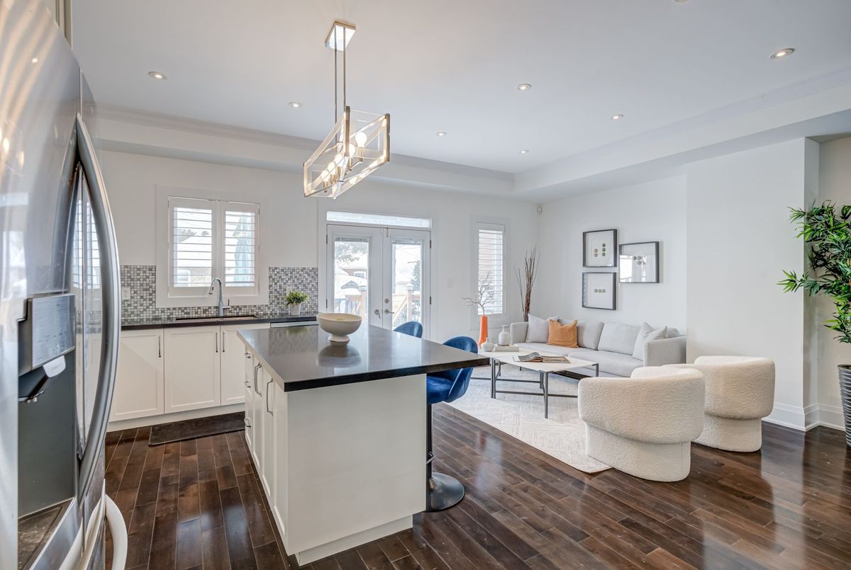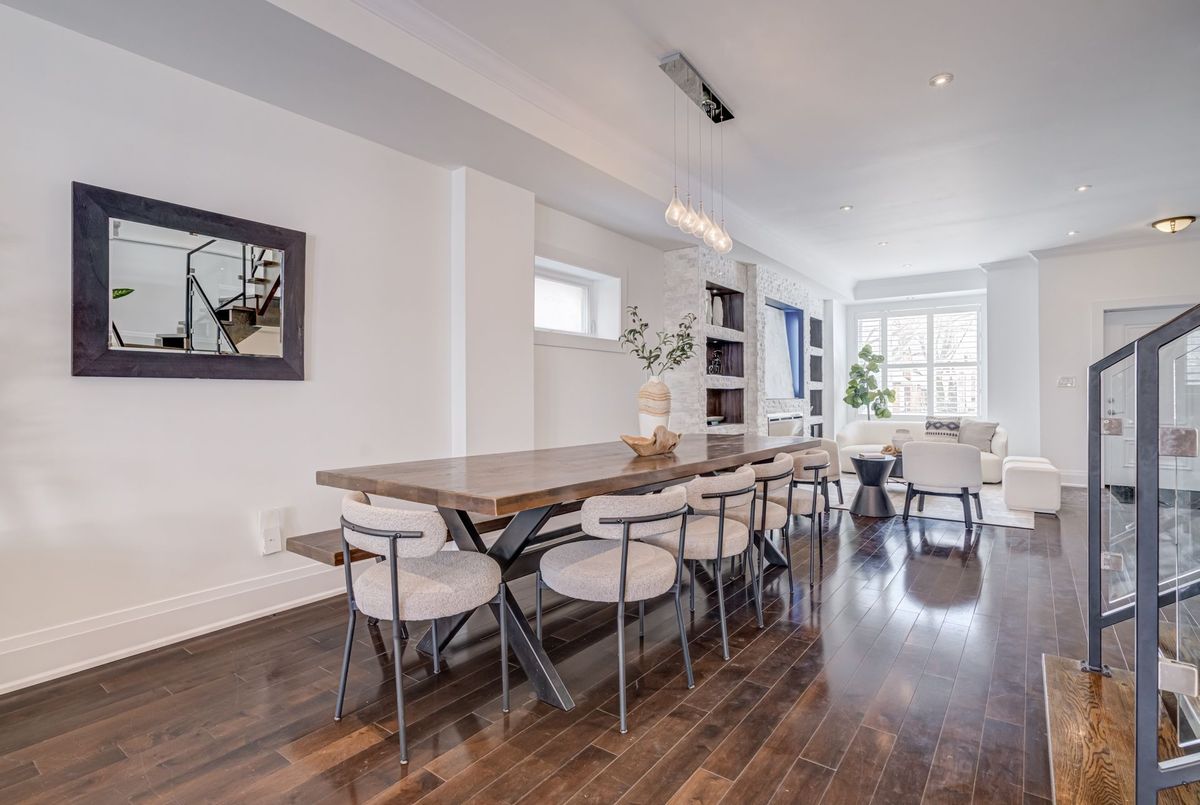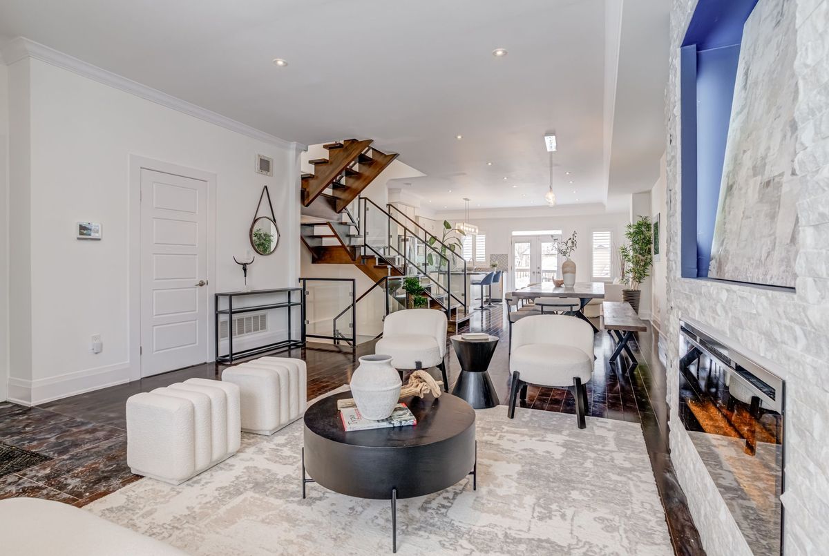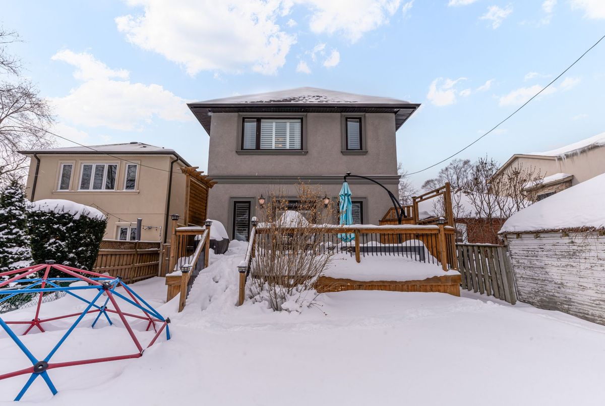 Welcome to this stunning 3+1 bedroom, detached custom-built home in the heart of prime East York. Featuring hardwood floors and pot lights throughout the main and second levels, this home offers both style and functionality. The welcoming foyer boasts tiled floors and a double-door coat closet, along with a convenient 2-piece powder room. The open-concept living and dining areas are filled with natural light from a large picture window overlooking the street. The living room features a cozy fireplace and built-in entertainment center, while the dining area flows seamlessly into the open-concept kitchen and family room. The kitchen is equipped with stainless steel appliances and a large centre island, perfect for everyday living and entertaining. The family room walks out to an oversized deck overlooking a spacious backyard. The second floor offers an oversized primary bedroom complete with a walk-in closet and luxurious 5-piece ensuite. Two additional generously sized bedrooms with large windows and closets share a 4-piece bathroom. The finished lower level features laminate flooring and pot lights throughout, with a large recreation room ideal for entertaining or a children's play area, along with space for a gym and home office. This level also includes a 3-piece bathroom and an additional bedroom with a large window. Enjoy the perks of this family friendly neighbourhood with vibrant shops, restaurants and TTC.