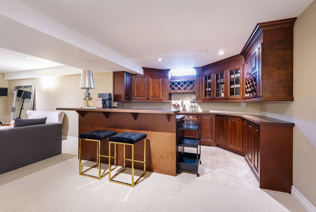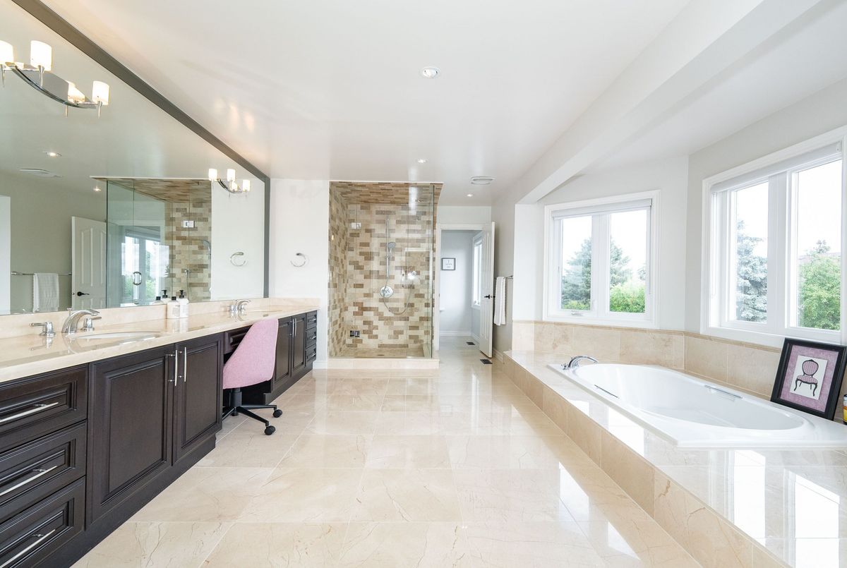 Welcome to this executive residence in the prestigious Bayview Hill community of Richmond Hill, offering over 7,300 sq. ft. of luxurious living space (4,516 sq. ft. per MPAC plus a professionally finished basement) with a 3-car garage, 5+2 Bedrooms and 6 washrooms. Premium Lot 60.94 x 166.64 Ft. Featuring *** 9 ft ceilings on the main floor, a dramatic 18 ft ceilings in foyer and living room ***, and sun-filled principal rooms, this home seamlessly blends comfort with sophistication. The gourmet kitchen showcases custom cabinetry, granite counters, a large island, premium KitchenAid built-in appliances, and a new Fotile range hood, opening to the breakfast area and spacious family room with fireplace. Formal living and dining rooms provide elegant entertaining spaces, while a main-floor office adds convenience. The palatial primary suite includes a sitting area, walk-in closet, and spa-inspired ensuite, complemented by generously sized secondary bedrooms with beautifully renovated baths. The professionally finished lower level is an entertainers dream with a recreation area, wet bar, gym, playroom, and full bath. Extensively renovated in 2022 with over $200,000 invested, upgrades include freshly painted interiors, new hardwood floors and mouldings in bedrooms, smooth ceilings, designer lighting, two newly finished ensuites (4-piece and 3-piece), and natural stone accents. Additional enhancements include interlock maintenance (2024), new fencing, and 38 exterior pot lights. Outdoors, the landscaped backyard offers a large patio, privacy fencing, and sprinkler system, while security features such as an alarm system and eight exterior cameras provide peace of mind. Ideally located near Bayview Hill Elementary and Bayview Secondary Schools, parks, shopping, and transit, this exceptional residence combines elegance, modern upgrades, and security, presenting a rare opportunity to own in one of Richmond Hills most prestigious neighbourhoods.