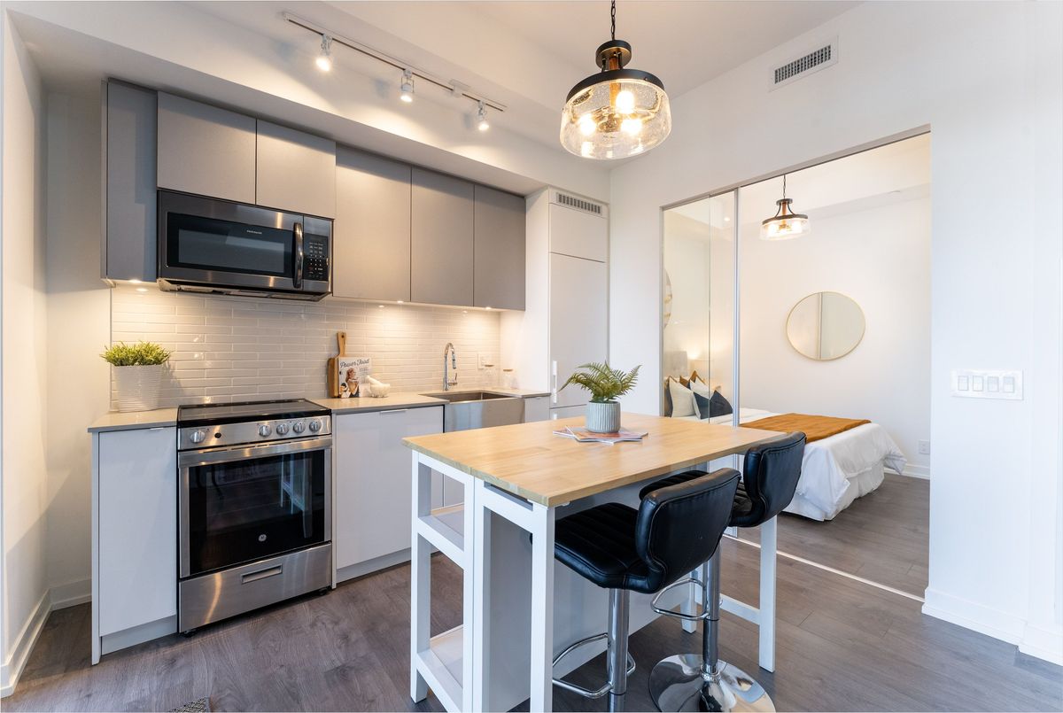 Why rent when you can own! Compare $833.00 per square foot to the $1050 average for similar units in XO and XO2!! Incredible value! Don't need the locker or parking space? Rent them out and pay down your mortgage by hundreds a month $$ or cover the maintenance. Step into this beautifully designed, spacious 1-bedroom plus den condo in the XO building completed in 2023. Priced at an exceptional $400k, this home offers unbeatable value in a vibrant and highly sought-after location. With a smart layout that maximizes space, this condo feels more expansive than its square footage suggests. maintenance fee includes Rogers Internet. Featuring sleek laminate flooring throughout and a contemporary kitchen equipped with stainless-steel appliances, a kitchen island and modern light fixtures, this home blends style and function. Enjoy the convenience of your own parking spot right in front of the elevator, as well as a locker located down the hall on the same floor as your apartment!!! The building offers an impressive array of amenities, including 24 hour concierge, a well-equipped gym, a spin room, yoga studio, party and event lounge equipped with dining bar and a kitchen, sports lounge with sweating and TV, pet spa, video gaming hub, Think Tank lounge with Wi-Fi and workstations, BBQ area, kids' zone, and an inviting outdoor terrace perfect for relaxing or entertaining. Located just minutes from the waterfront and the iconic Exhibition Place, Liberty Village, King and Queen West neighbourhoods, this condo is truly in the heart of it all.
