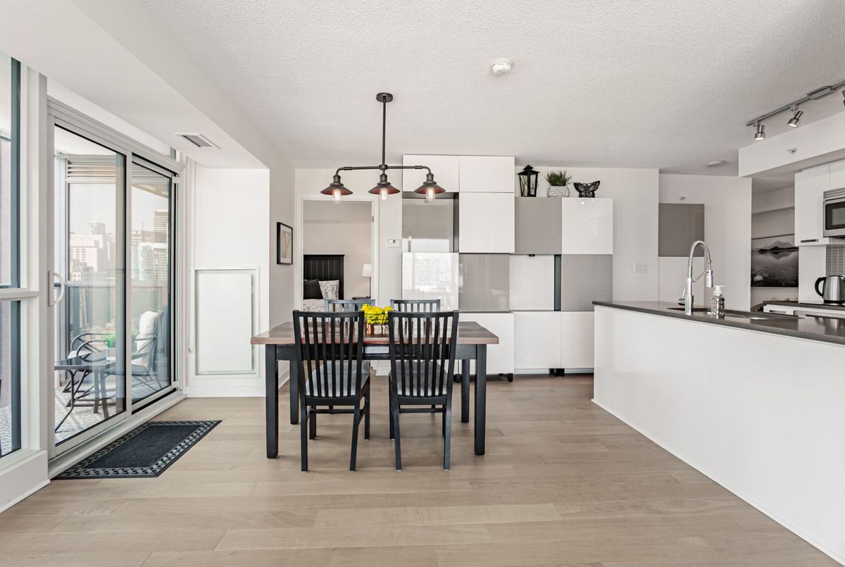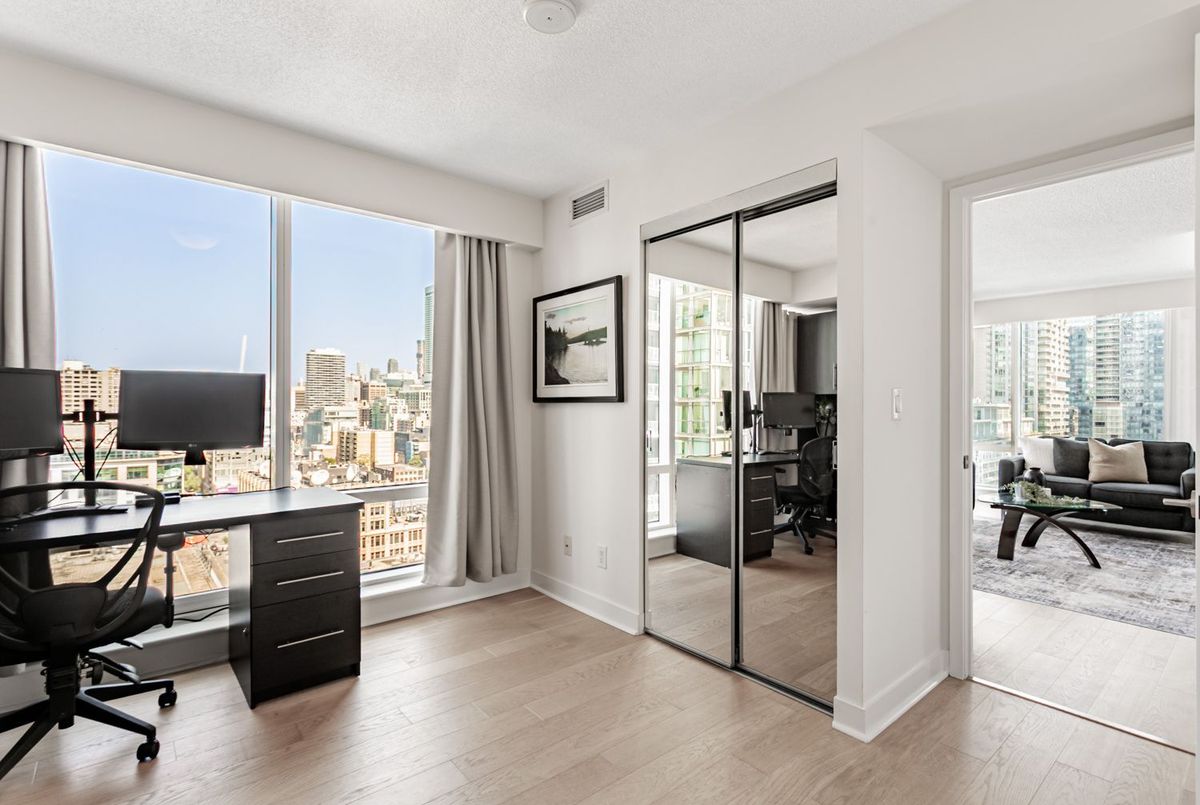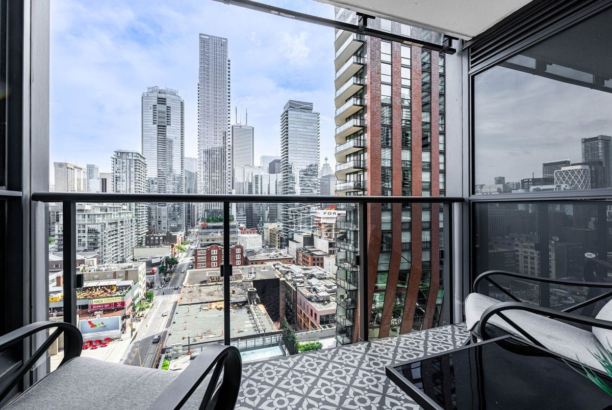 Hands down one of the best 2 bedroom layouts in the building! This bright, corner suite is wrapped in floor-to-ceiling windows, flooding the open-concept living space with natural light and showcasing panoramic city views you'll never get tired of. The sleek kitchen, stylish finishes, and generous living/dining area make it just as perfect for entertaining as it is for unwinding at home. Step outside and you're in the heart of downtown, surrounded by Toronto's best dining, shopping, theatres, and galleries, with the Financial District just a short walk away. Residents enjoy premium amenities including a fully equipped fitness centre, elegant lounges, and 24/7 concierge. Downtown living at its finest, this ones not to be missed.