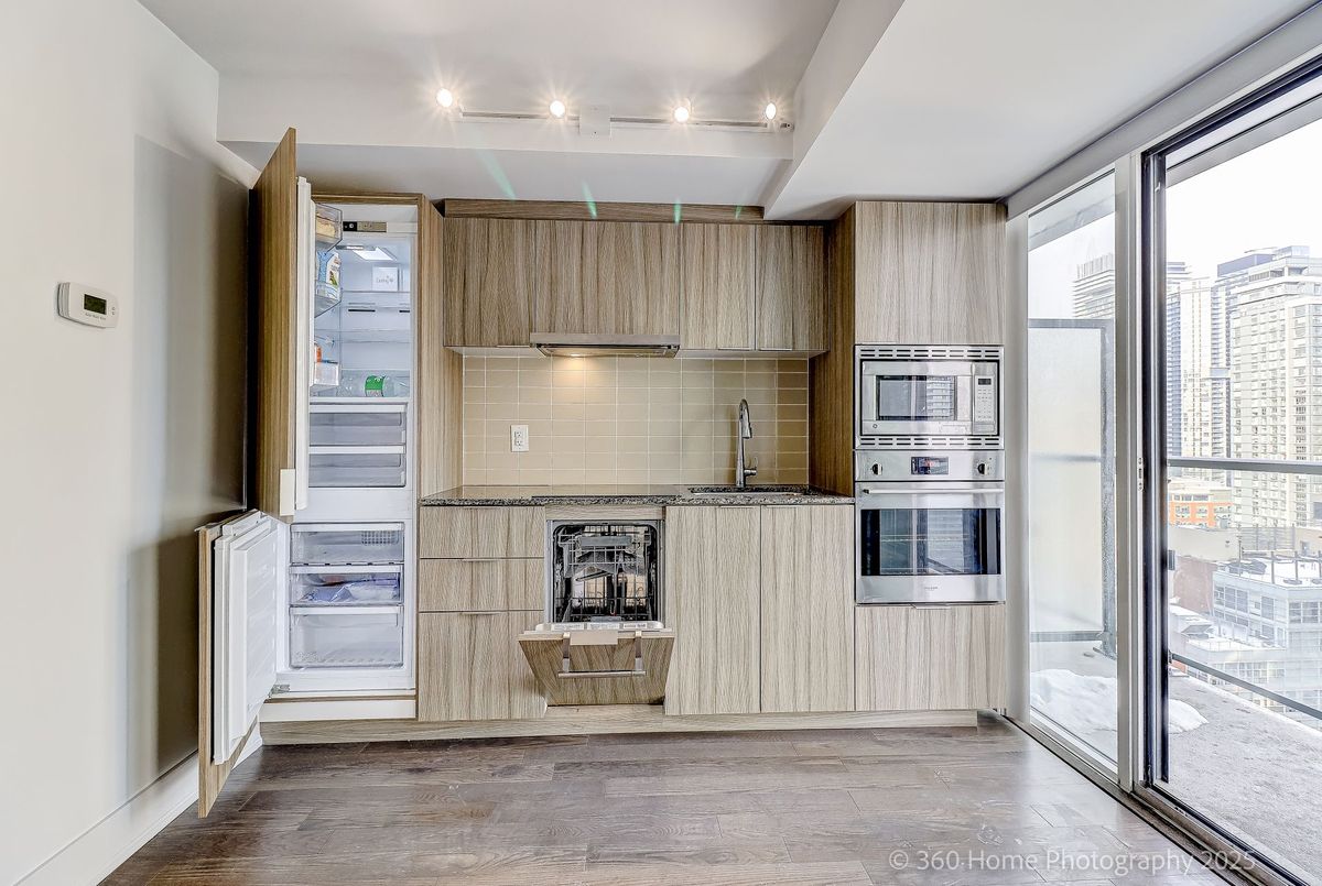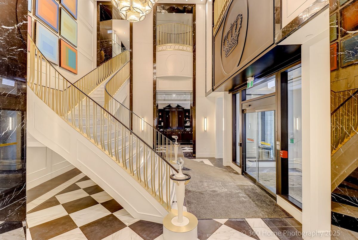 Welcome to The Britt, one of Bay Street's most iconic residences-an elegant conversion of the historic Sutton Place Hotel blending timeless Art Deco design with modern downtown living. Perched on the 21st floor, this 525 sq. ft. one-bedroom plus den offers bright east-facing city views and a walkout balcony, perfect for morning coffee or winding down with the skyline at night. The suite has been freshly painted and features brand-new carpet in the bedroom, creating a clean, move-in-ready space. The functional layout includes a versatile den ideal for a home office or study area-perfect for young professionals or students seeking a stylish and efficient urban home. Residents enjoy an impressive lobby with grand Art Deco staircase, a spacious resident lounge, and friendly concierge service. Premium amenities include a well-equipped gym, pool, hot tub, and party rooms-everything you need without leaving home. Unbeatable Bay Street location steps to transit, fashionable Yorkville with chic restaurants and shops. Close to major hospitals, universities, Royal Ontario Museum and the financial district. Make this gem your home!